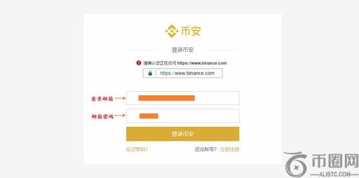 点击登录页面进行账号密码输入,点击“登录币安”。