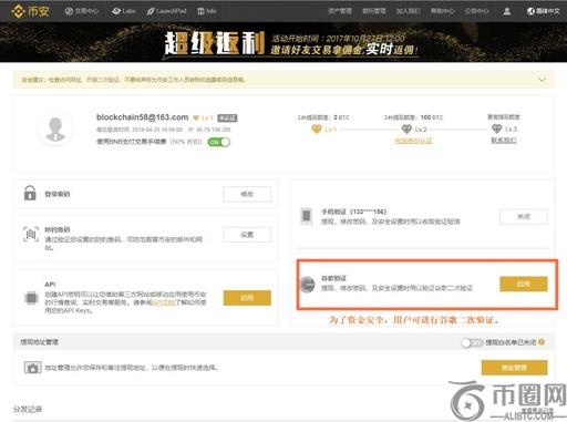 最后进入开启谷歌验证页面,用户需填写上一步中记录下来的16位密钥、币安账号登录密码,手机短信验证码,谷歌验证器上面的验证码,点击“开启谷歌验证”完成验证程序。