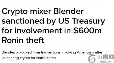 其实,美国财政部在 2022 年 5 月,就对另一个混币服务 Blender 进行过制裁,理由是它涉嫌帮助某国官方黑客组织(这里主要指 Lazarus Group)清洗从 Axie Infinity 窃取的部分资金。